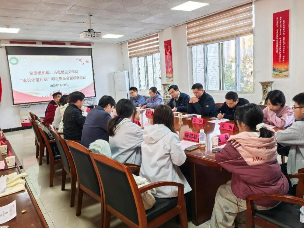 为持续全面深化“三全育人”综合改革、践行“以生为本”教育理念、落实立德树人根本任务,11月28日下午,党委组织部与我院联合举行2025年“成长守望计划”师生见面会。校党委书记徐业勤出席见面会;党委组织部党支部全体党员,我院领导班子成员,2025级学生辅导员、班导师及入选2025年“成长守望计划”的全体学生参加见面会。会议由我院院长黎海波主持。